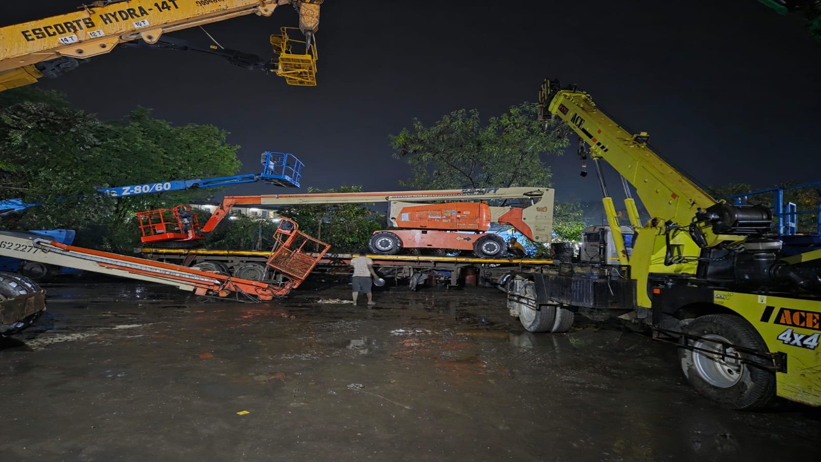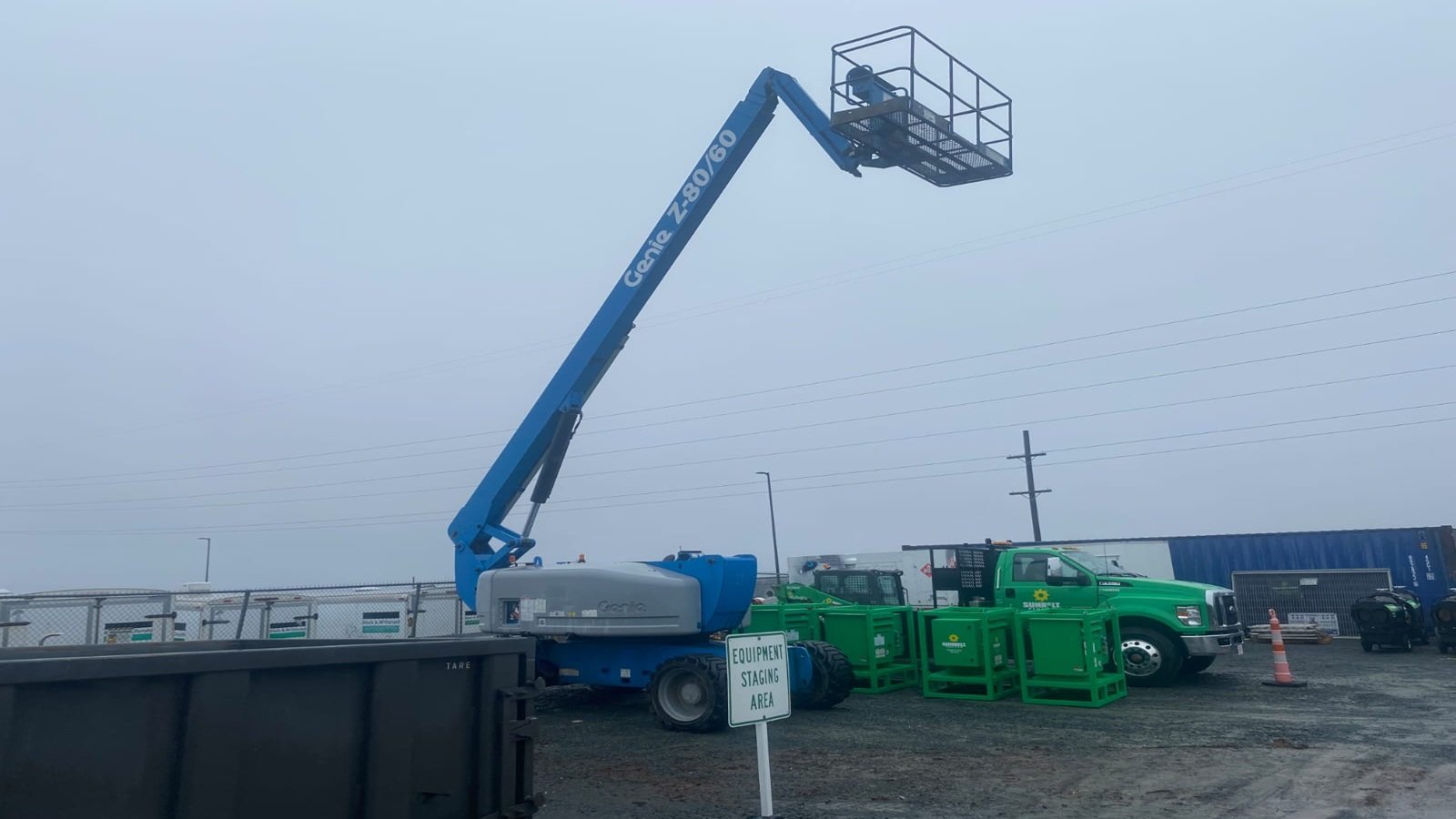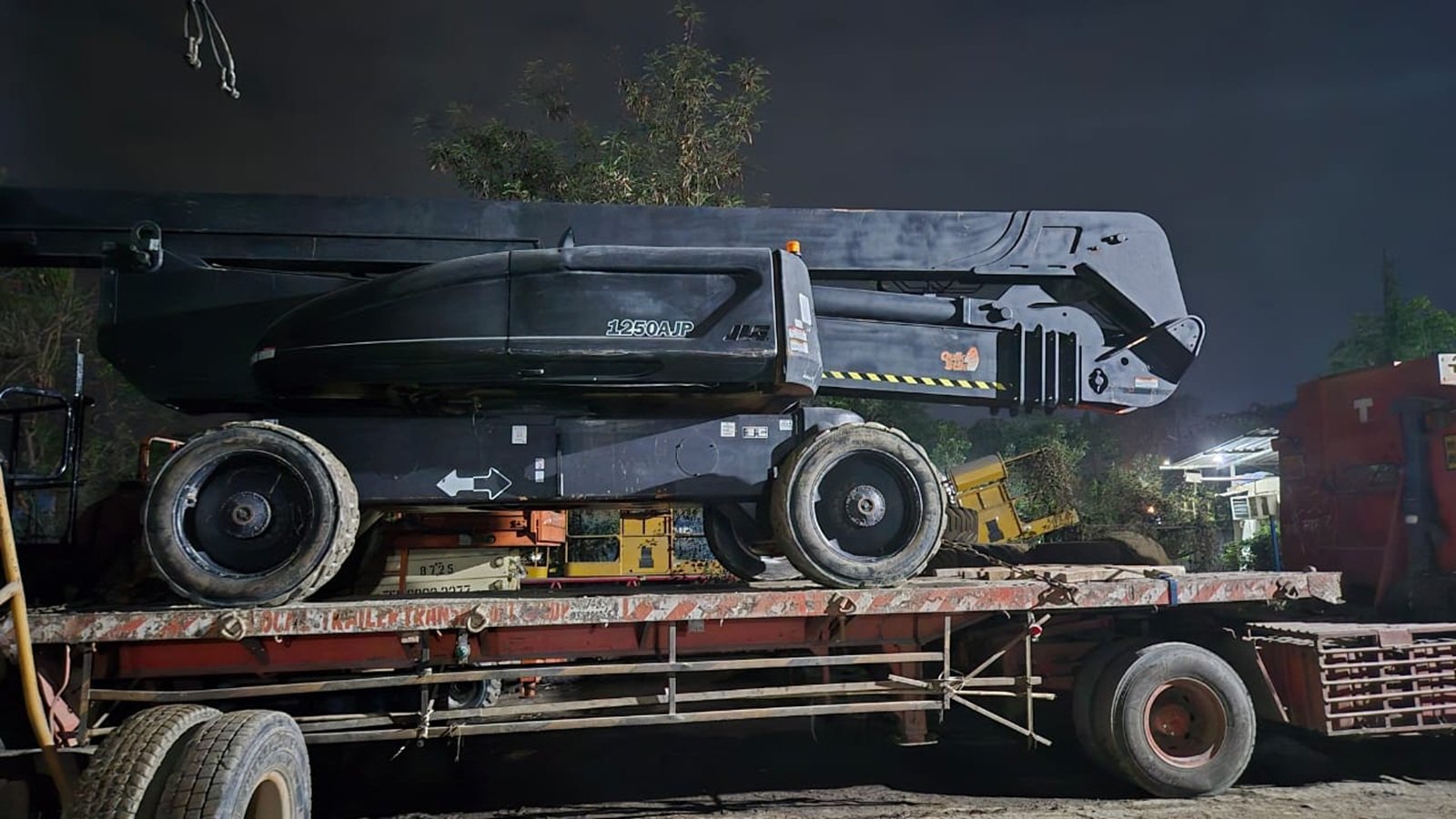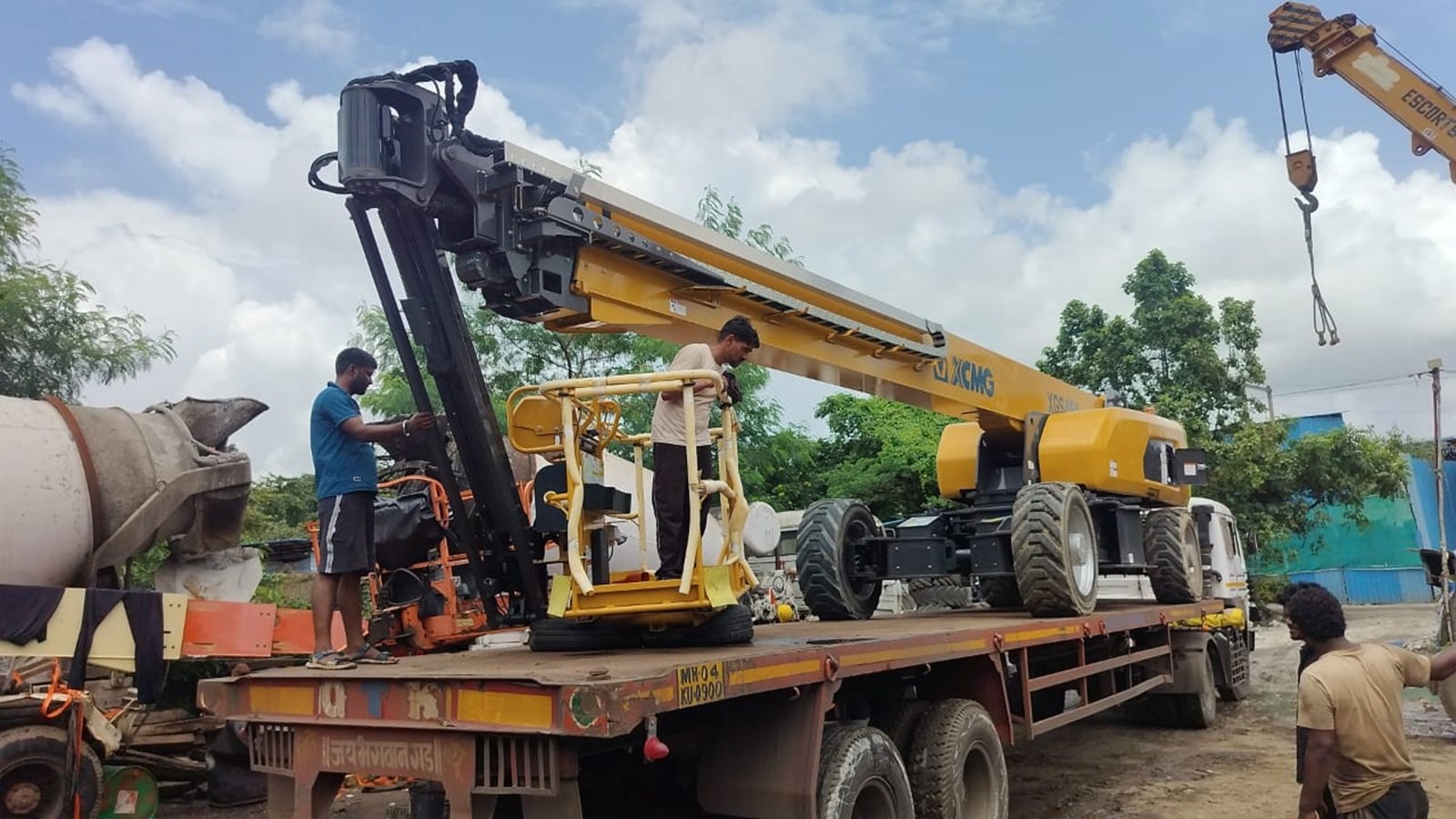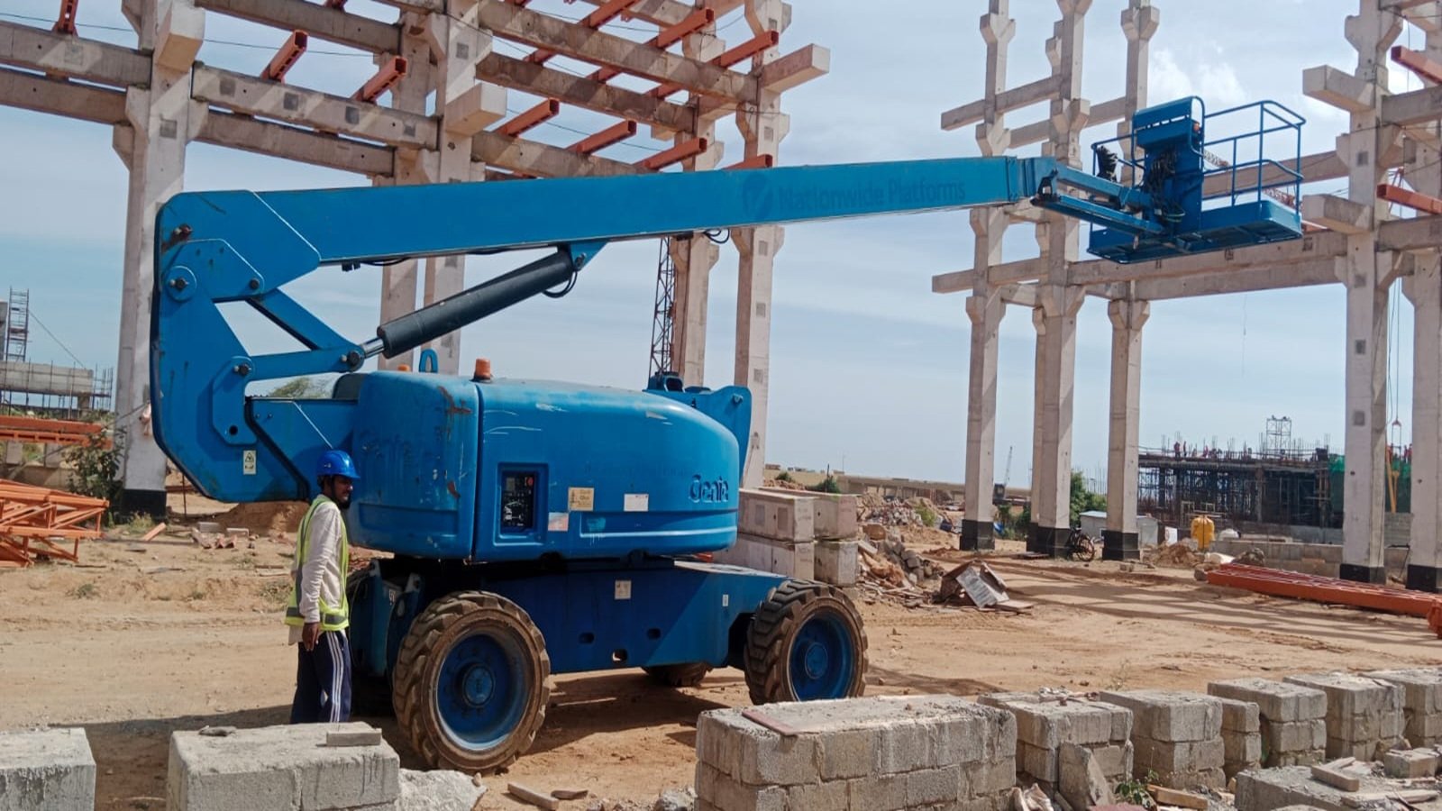 This machine is used to lift people safely to elevated work areas. It is mounted on a truck, so it can move easily from one site to another.